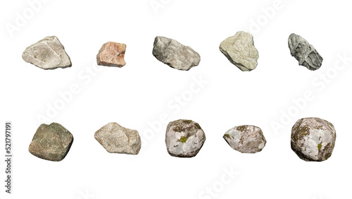 Top View 3D stone isolated on white background Use for visualization in architectural design or garden decorate