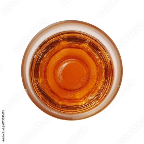 Top View Amber Liquid Texture Close Up Glassware Design Abstract Honey Color Octagon on transparent background