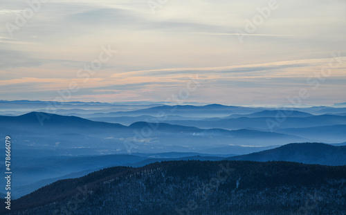 Top view from Peak Mansfield to the valley. Vermont, USA.