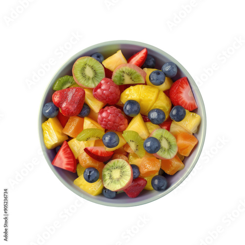 Top view of a bowl of fresh fruit salad on a transparent background