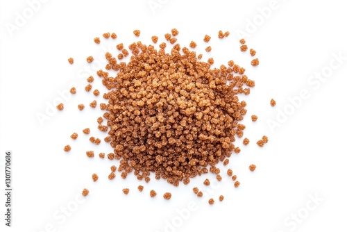 Top view of a pile of brown couscous grains isolated on white.