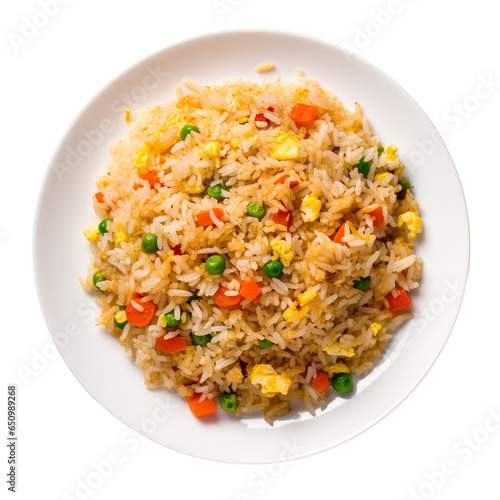 top view of chinese food Egg Fried Rice isolated on a white transparent background