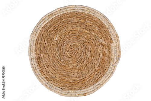 white background, placemat, place setting, single object, natural, round, isolated, topview, brown, circle, detail, fiber, fiber, mat, material, nature, pattern, rattan, rough, straw, texture, textured, bicolour, threaded, weaving, wicker basket, woven, yellow