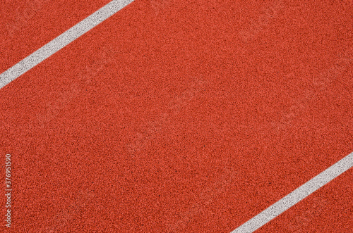 Top view of the running track rubber lanes cover texture with white line marking for background.