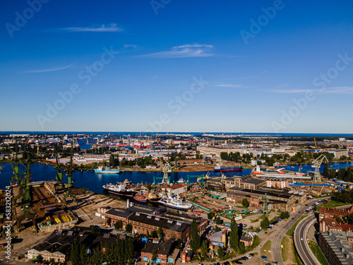 Top view of the shipyard in Gdansk on a summer,sunny day.