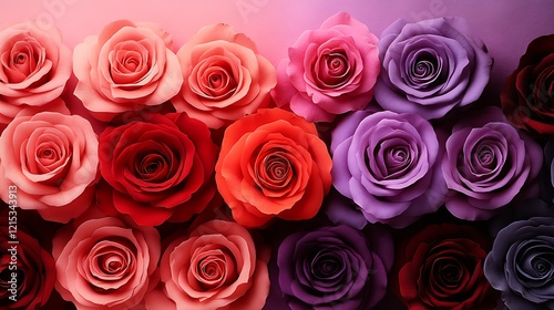 Top View of Vibrant Pink Red and Purple Roses with Lush Green Foliage in a Harmonious Display : Generative AI