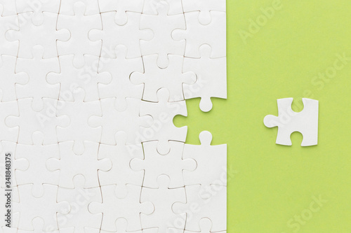 Top view puzzle with one piece beside. Outstanding, choice and difference concept. Being unique and individuality.
