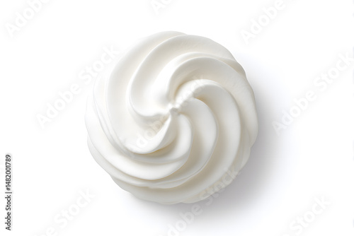 Top view whipped cream or meringue on white background. Meringue swirl, realistic bakery mousse