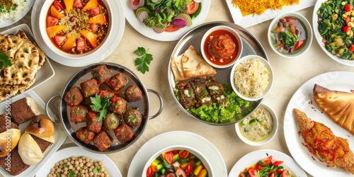 wooden, table, top, view, arabic, food, plate, variety, dish, no, people, flat, lay, widener, cookery, meal, culinary, item, assortment, feast, traditional, favor, vibrant, colours, serving, platter, tableware, elegant, arrangement, texture, aromatic, cultural, kitchen, epicure