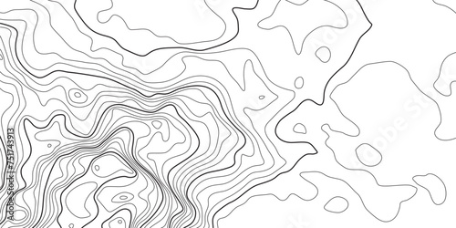 Topographic pattern texture. Black contours on white vector topography. Geographic mountain topographic. Map on land strok terrain. Elevation graphic contour height lines. Vector Illustration.