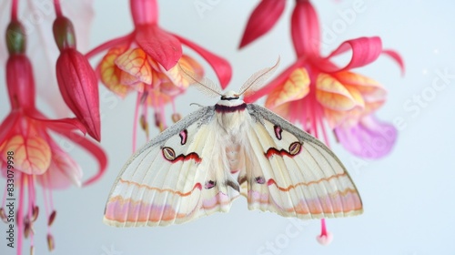 Topview Giant silk moth on flower background, overhead view