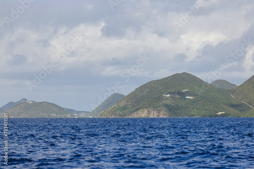 Tortola, British Virgin Islands - March 27, 2024: The shoreline of Tortola in the British Virgin Islands