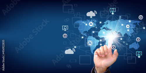 Touching virtual screen global network connection, Telecommunication communication, Social network and digital marketing, Business data exchanges