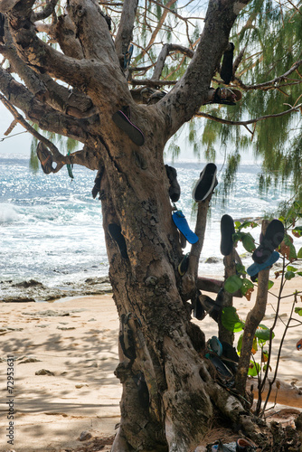 seychelles, memento, footwear, missing, shoe, tree, beach, police, tropical, island, abandoned, accessory, art, attached, banyan, casual attire, clothing, decorated, decoration, discarded, fashion, found, hanging, lost, memory, misplaced, reminder, signs, signboard, summer, thong, tour tourism, holiday maker, trip, trunk, vacation