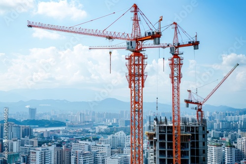 site, business, architecture, construction, industry, equipment, work, development, crane, tower, machine, urban, industrial, structure, steel, tall, high, building, blue, technology, engineering, project, yellow, estate, sky, workplace, modern, city, town, machinery, dusk, mechanical, view, real, silhouette, twilight, unfinished, orange, sunset, growth, concrete, cloud, man, new, heavy, labor, background, frame