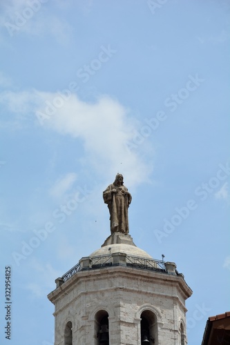 tower, church, cathedral, statue, jesus christ, jesus christ, jesus christ, stone, carving, stone, building, building, architecture, sculpture, sky, cloud, cloud, blue, white, exterior, day, religion, catholic, roman, sunny, sun, sunlight, outdoors, outside, tour tourism, town, travel destination, ancient, historical building, history, art, europa, city, symbol, travel, landmark, old, valladolid, spain, urban, famous, historic, historical, square