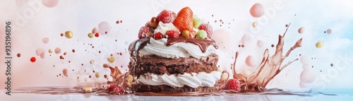 towering layered chocolate dessert, elegantly topped with a flowing fondue glaze.