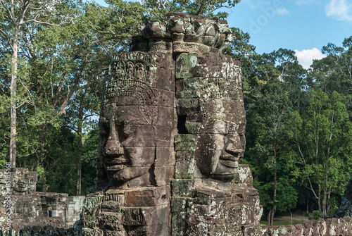 towers as metaphor of the mount meru with the head of lokeshvara and the face of jayavarman VII in the complex of the bayon in the archaeological angkor thom place in siam reap, cambodia