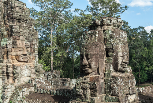 towers as metaphor of the mount meru with the head of lokeshvara and the face of jayavarman VII in the complex of the bayon in the archaeological angkor thom place in siam reap, cambodia
