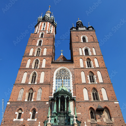 Towers of the Saint Mary Church in Krakow