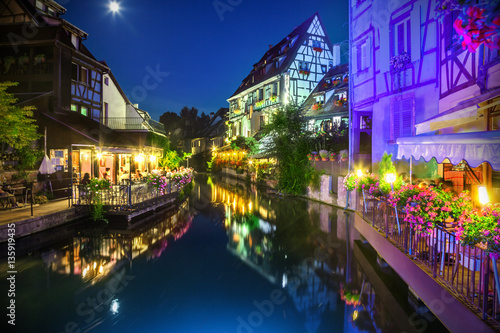 colmar, france, alsace, alsace, venice, town, night, dusk, architecture, bridge, building, canal, grooved, city, city landscape, colourful, destination, europa, evening, exterior, facades, framework, french, half-timbered, heritage, house, illumination, landmark, light, little, mediaeval, old, petit, petite, eatery, river, scenic, small, summer, sunny, timber, holiday maker, traditional, travel, twilight, view, village, water