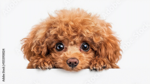 dog, pet, white background, peeking, small dog, isolated, studio shot, curious, adorable, front view, fluffy, looking, blank space, brown, funny, expression, playful, charming