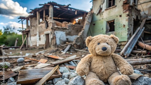 toy, teddy bear, countryside, destroyed, house, shelling, bear, teddy, brown, animal, isolated, soft, stuffed, fluffy, fur, sitting, childhood, object, plush, gift, cuddly, white, furry, children, play, fun, cute, love