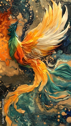phoenix, traditional, gold, illustration, art nouveau, amber, colourful, poster, background, design, pattern, network, decoration, generative, wallpaper, art, drawing, ornament, texture, fire, orange, symbol, bird, swirl, element, animal, vintage, wing, nature, card, feather, red, ancient, painting, culture, temple, asia, artistic, paint, gold, china, shape, decorative, frame, wave, curve, ornate
