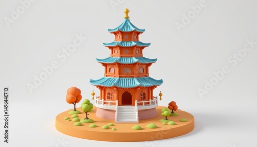Traditional asian pagoda model creative studio 3d render minimalist design front view cultural representation