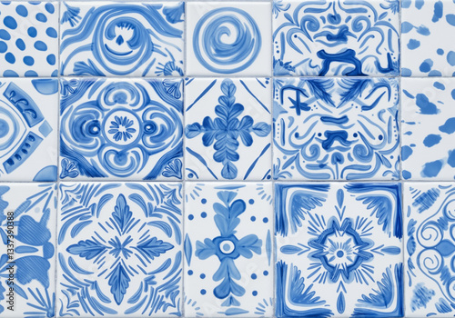 Traditional ceramic tiles creating beautiful vintage floral and geometric patterns