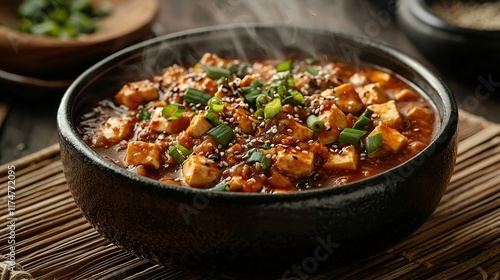 chinese food, chinese, traditional, receipe, food, tofu, spicey, scallion, sesame seeds, steaming, aromatic, saucy, cultural, cookery, savoury, flavorful, asian, heritage, bold, comforting, vibrant, stew, meat, meal, dish, plate, cooking, lunch, curry, pork meat