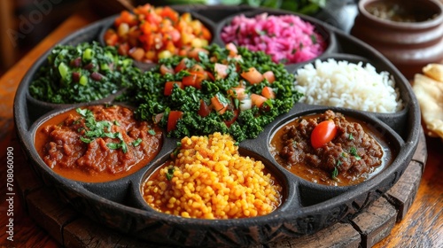 Traditional Ethiopian Platter Unwind: Ethiopian Injera and Stews, Cultural Setting, Communal Vibe, Authentic Ethiopian Elements