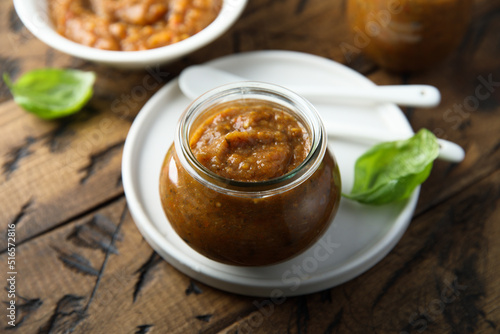 food, dip, vegetable, paste, canned, aubergine, roasted, grilled, tomatoes, capsicum, bell pepper, basil, sauce, mashed, aubergine, epicure, lunch, vegetarian, closeup, olive oil, copy space, pepper, cooking, eastern, bowl, fresh, blue, mediterranean, lebanese, dish, paprika, meal, vegetarian, arabic, snack, turkish, background, traditional, spicey, chili, delicious