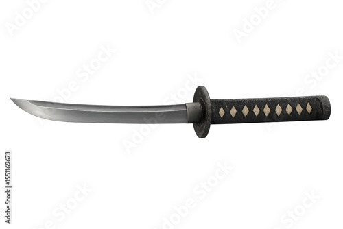 sword, japanese, samurai, weapon, blade, sharp, steel, metal, hilt, handle, traditional, culture, history, japan, warrior, fighting, combat, cut-out, isolated, single object, studio shot, horizontal, closeup, detail, texture, black, grey, silver, edge, power, strength, art, craft, design, antique, vintage, object, nobody, copy space, asian, oriental