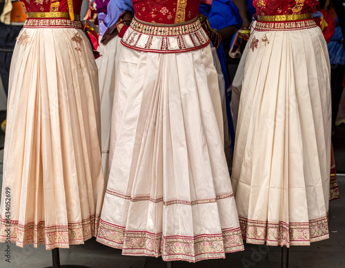 traditional, dance, costume, with, their, distinctive, cylindrical, skirt, delicate, embroidery, are, displayed, act, classical, form, cultural, heritage, costume, skirt, culture, performance, still, life