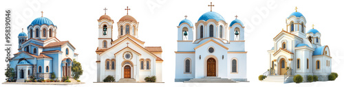 Traditional Orthodox churches blue domes bell towers religious architecture transparent background