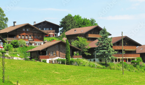 Traditional rural architecture and family livestock farms on the shores of Lake Lungern - Canton of Obwald, Switzerland (Traditionelle Architektur am Ufer des Lungernsees - Schweiz)