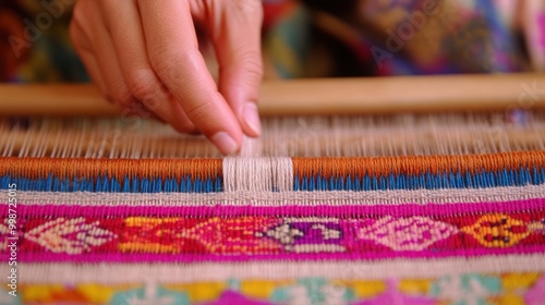 Traditional silk weaving in uzbekistan: colorful textile craft in spring design