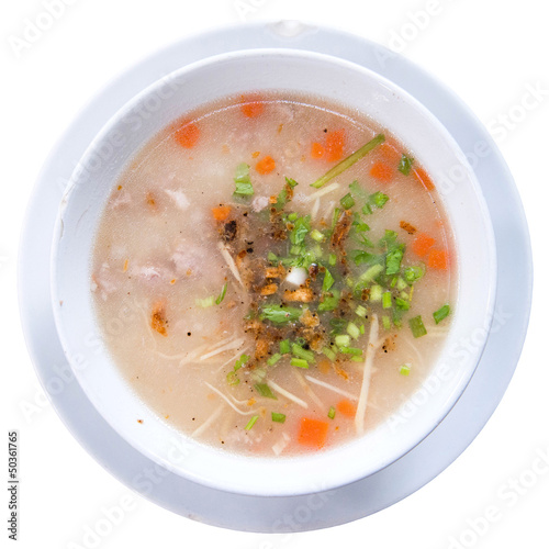 asia, asian, bowl, breakfast, china, chinese, cookery, culture, dim, dinner, east, egg, food, gruel, heat, lightweight, lunch, meal, onion, pork meat, porridge, eatery, rice, spoon, spring, sum, thick, traditional, vegetable, white, wood, isolate