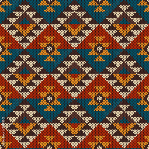 Traditional Tribal Aztec seamless pattern on the wool knitted te