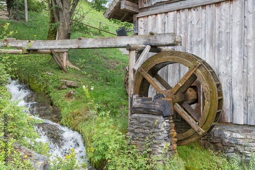 Traditional wooden waterwheel near Werfen in Pongau valley, Austria. The water-wheel was used to generate power for crunching cereals