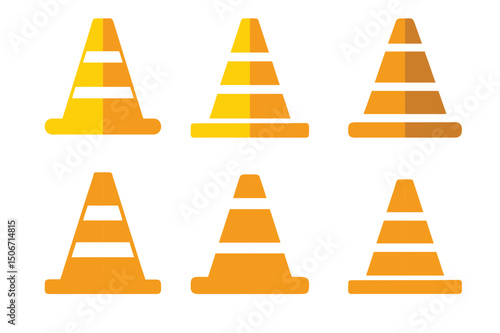Traffic Cone Icon set vector on white background, Collection of Traffic Cone Icons Versatile Designs for Construction, Road Safety, and Warning Illustrations