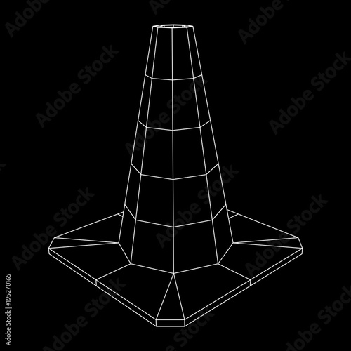 Traffic cone. Road sign wireframe low poly mesh vector illustration. Under construction concept.