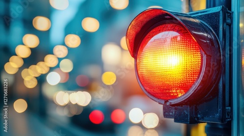 Traffic light warning signal urban intersection cityscape evening close-up safety alert