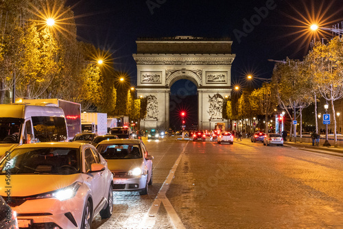Traffic road of Champs-Elysess to Arc de Triomphe.