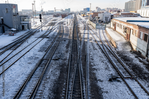 railway, train, rail, railroad, track, transportation, travel, transport, track, station, steel, road, metal, way, line, rail, direction, perspective, platform, day, old, iron, line, junction, beautiful, blue skies, cold, countryside, environment, follow, forest, frost, glacé, fun, holiday, ice, landscape, looking down, mongolia, mongolian, nature, nordic, pine