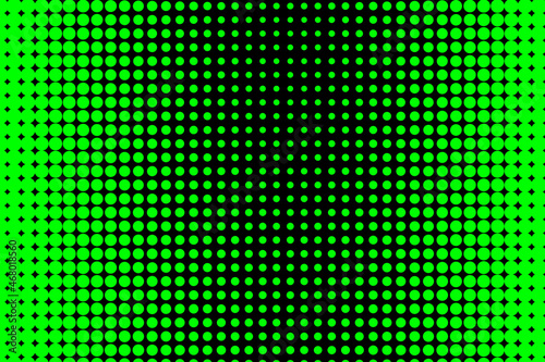 trame de ronds verts grossissants du centre vers l'extérieur sur fond noir