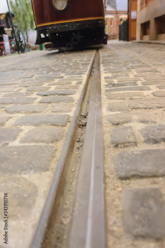 tram, track, track, street, britain, britain, bygone, clean, cobbled, cobble, efficient, electric, electricity, mass transit, no people, nobody, old, old-fashioned, old-fashioned, outside, past, pave, paving, public transport, rail, railroad, railway, railway, road, road, stone, stone, street, surface, past, traditional, tradition, traffic, train, train