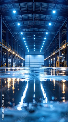 art, art deco, warehouse, flicker, light, oil, puddle, rolling, ladder, blue, moonlight, industrial, design, illumination, space, architecture, tranquil, atmosphere, depth, shine, symmetry, night time, contrast, stillness, floor, calm, ambience, modern, aesthetic, empty, optical, perspective, interior, storage, beam, quiet, surface, dramatic, shadow, texture, clean, vibrant, scene
