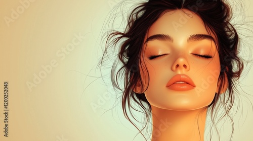 Tranquil beauty: serene woman with closed eyes and soft expression in warm tones